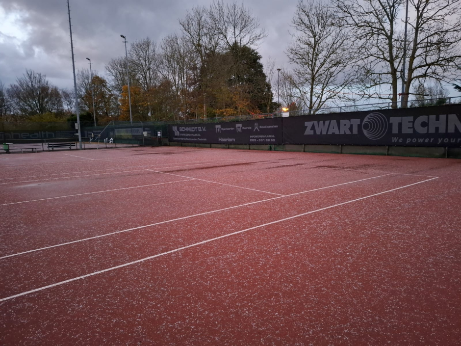 We zijn als vereniging met alle leden verantwoordelijk voor het handhaven van deze regels. Dat betekent dus ook dat een ander lid je kan vragen om de baan te verlaten als verder spelen onverantwoord is. Op de website vind je telkens de meest actuele informatie over de bespeelbaarheid van de banen. Daarop staat ook wanneer we verwachten dat de banen weer bespeelbaar zijn.