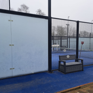 Vorstaanslag op de wanden van de padelbaan, dus niet spelen.